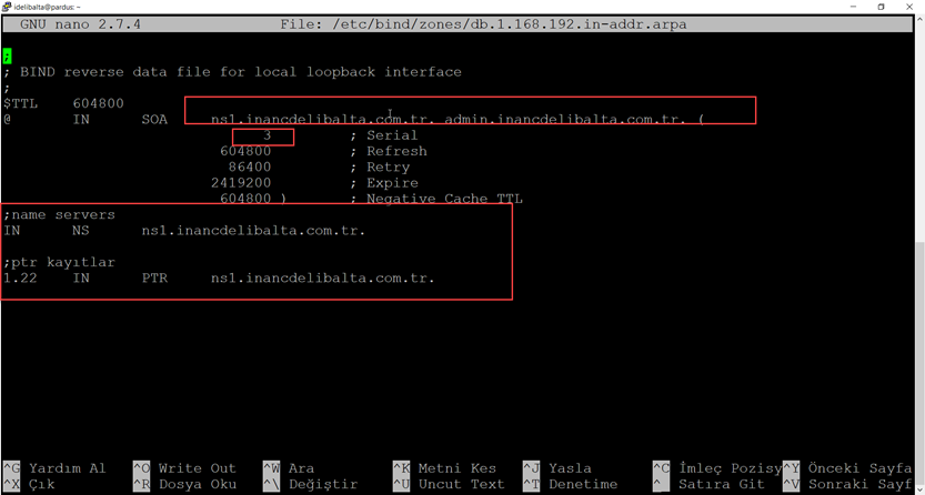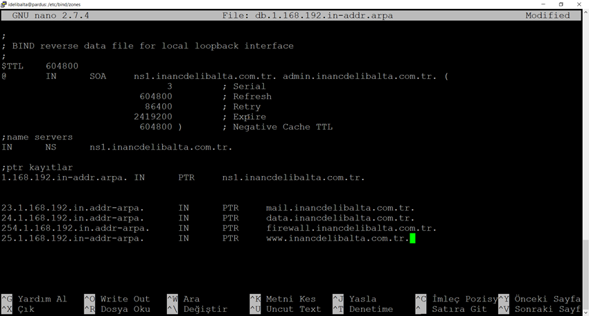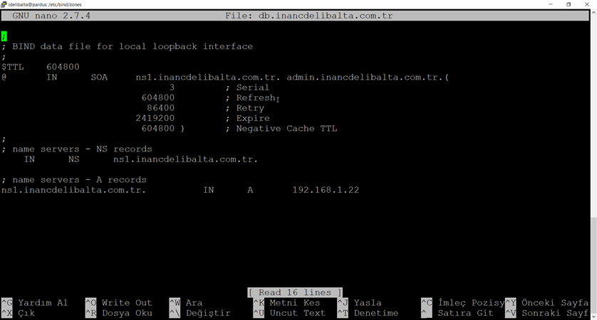 sudo /etc/bind/zones/db.inancdelibalta.com.tr