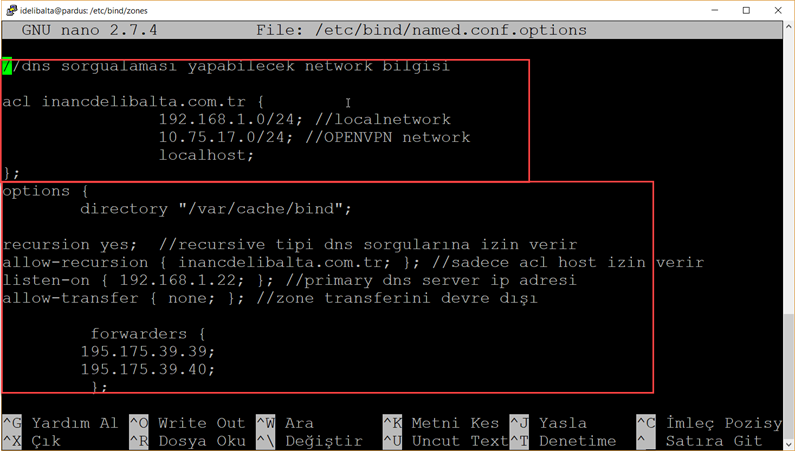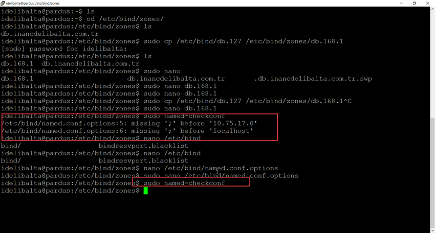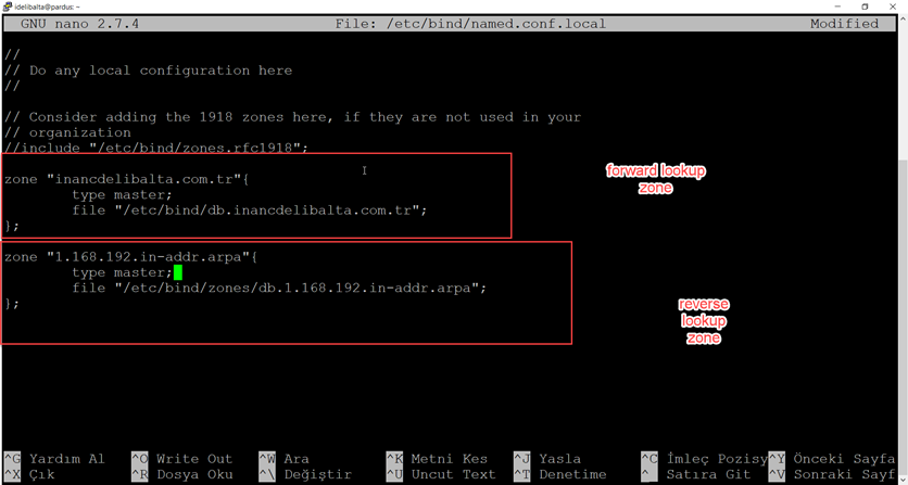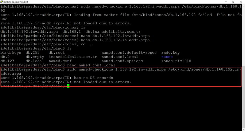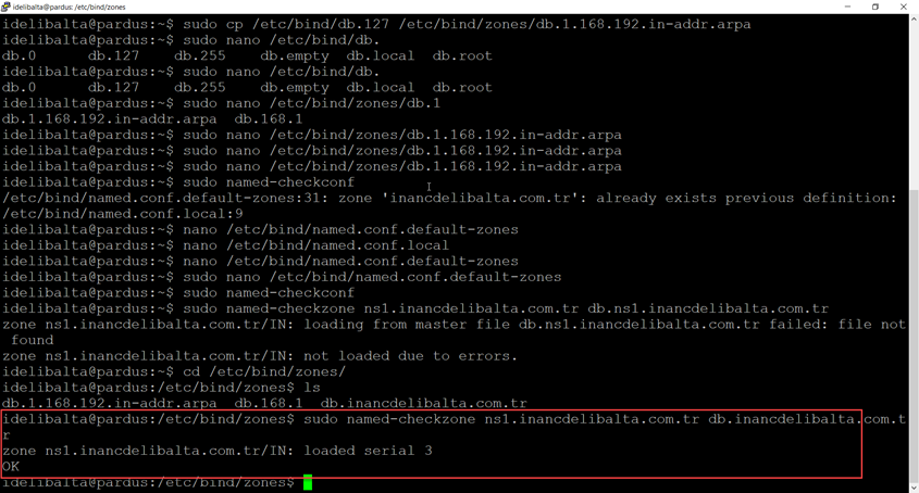 sudo named-checkzone //forward lookup zone sudo named-checkzone ns1.inancdelibalta.com.tr db.inancdelibalta.com.tr