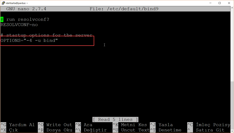 sudo nano /etc/default/bind9