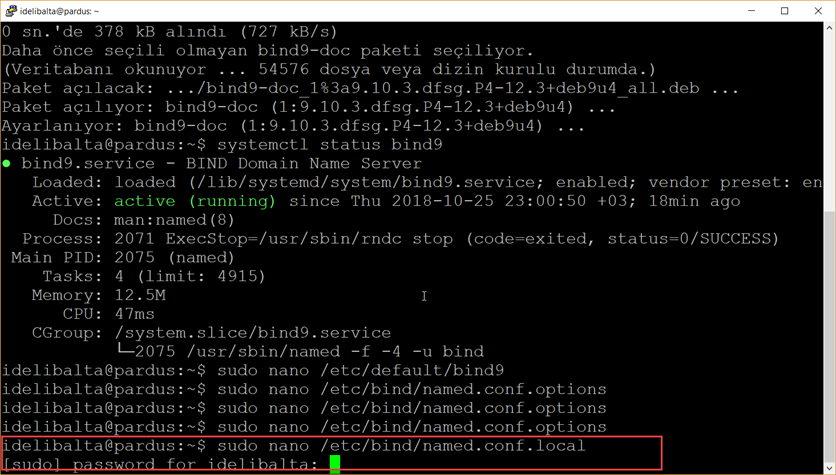 Pardus üzerine bind kurulum ve konfigürasyon yaparken aşağıdaki adımları izleyebiliriz.
