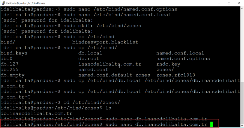 sudo cp /etc/bind/db.local /etc/bind/zones/db.inancdelibalta.com.tr