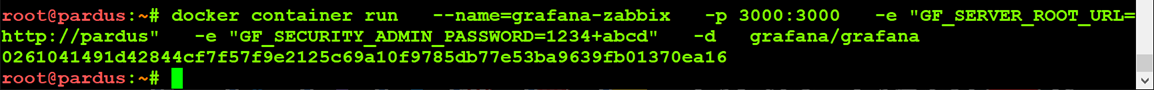docker container run --name=grafana -p 3000:3000 -e "GF_SERVER_ROOT_URL=http://pardus" -e "GF_SECURITY_ADMIN_PASSWORD=1234+abcd" -d grafana/grafana