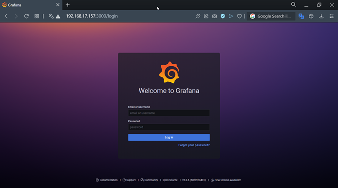 Öncelikle browser açıp http://IPADRES:3000 bilgisini girip grafana ekranına ulaşalım.