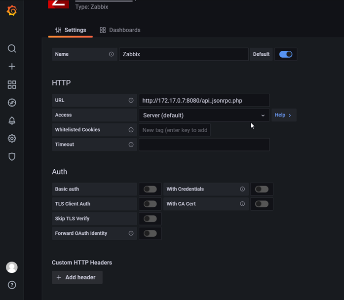 Data source olarak Zabbix uygulamasını seçelim. Ve akabinde grafana-zabbix integration ekranını aşağıdaki şekilde dolduralım.