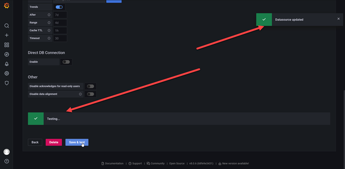 Save & test tıkladıktan sonra ilgili iletişimin sağlandığını görüyoruz.